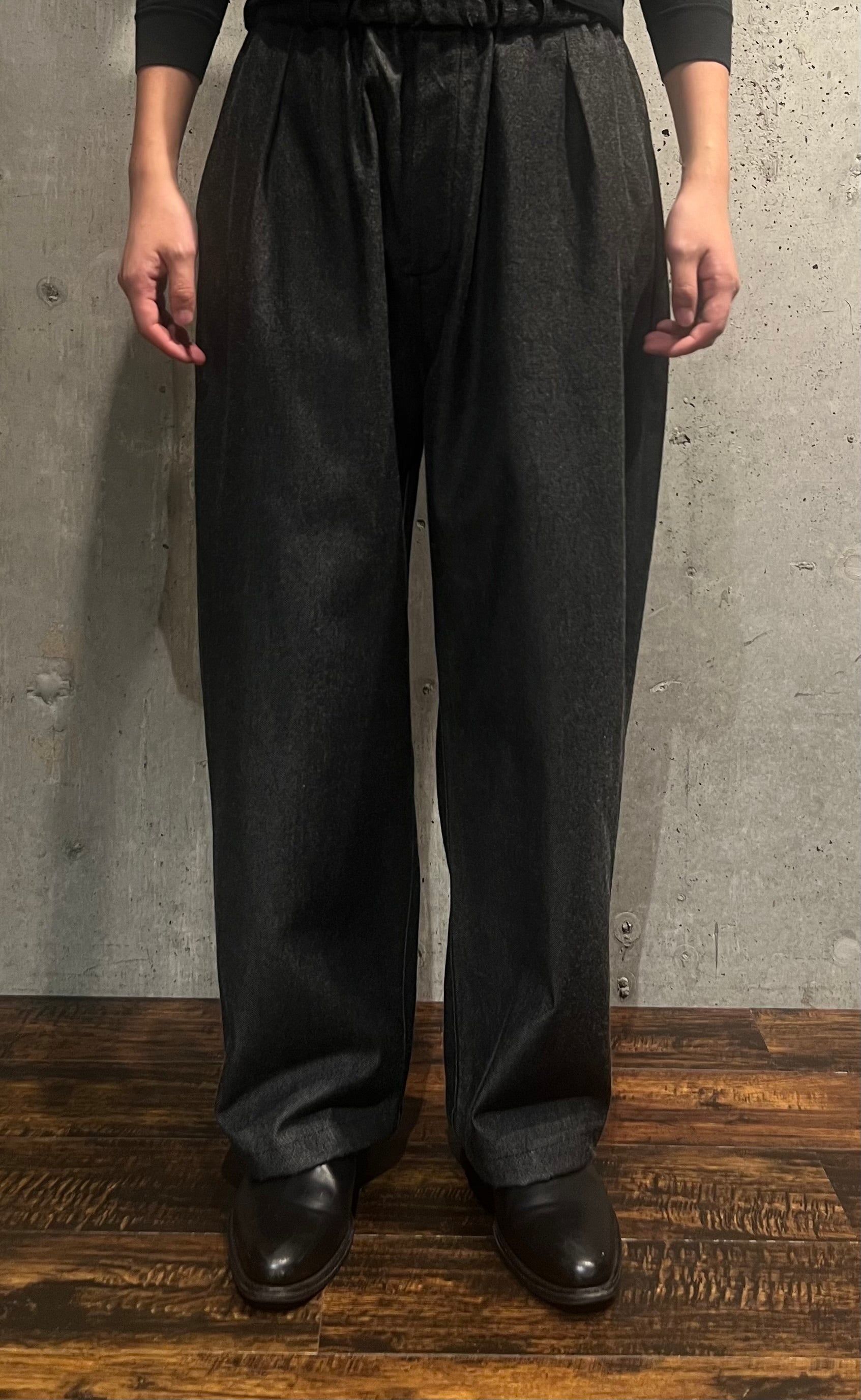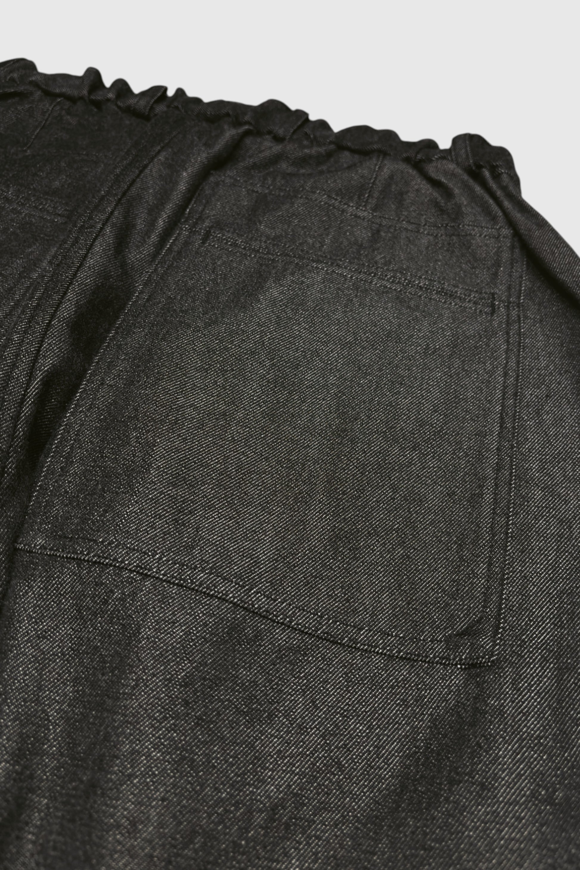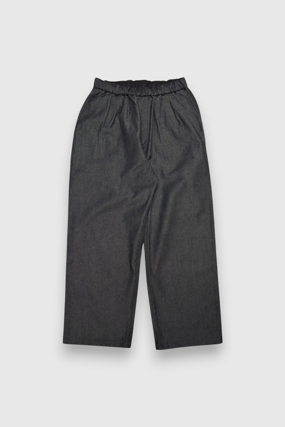 裾幅を広くとったワイドストレートシルエットのパンツです。バックポケットは上下二層構造で、上部パーツをフラップ状に設けることで大きな物も確実に収納し、収納物の落下を防ぎます。生地の高い耐久性を活かしつつ機能性を強化し、日常の道具としての役割を果たします。