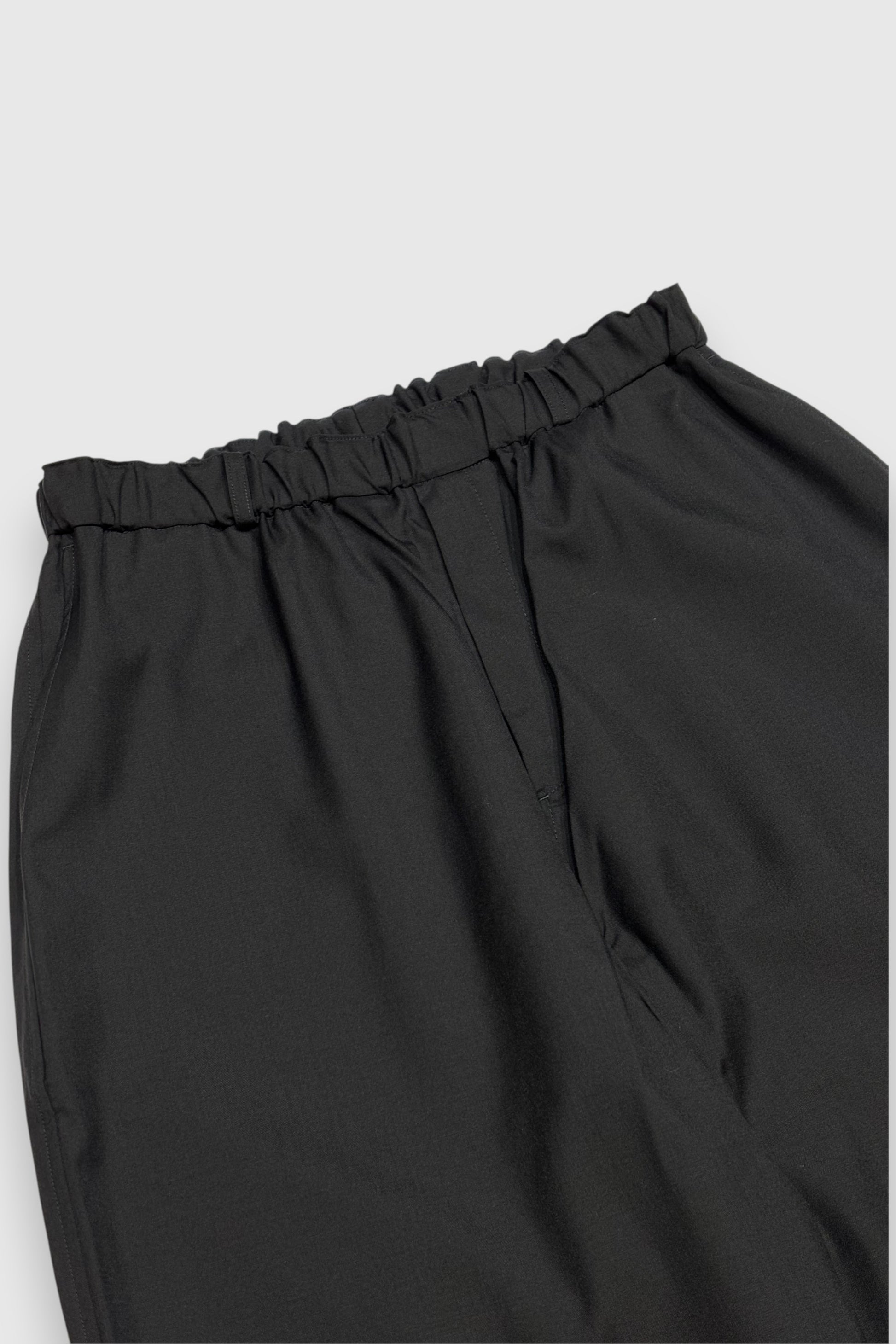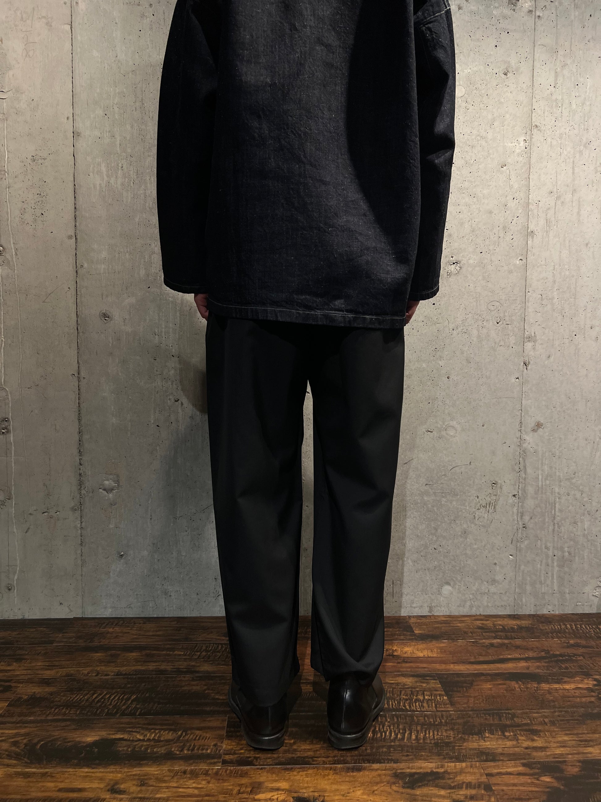 MITTANの定番であるストレートシルエットのパンツで、程よいゆとり感と適度な丈感が特徴です。ウエストはゴム仕様になっており、内側の紐でベルトなしでも快適に着用できますが、ベルトループも配しているため、ポケットをしっかり活用する際などにベルトを使用することも可能です。