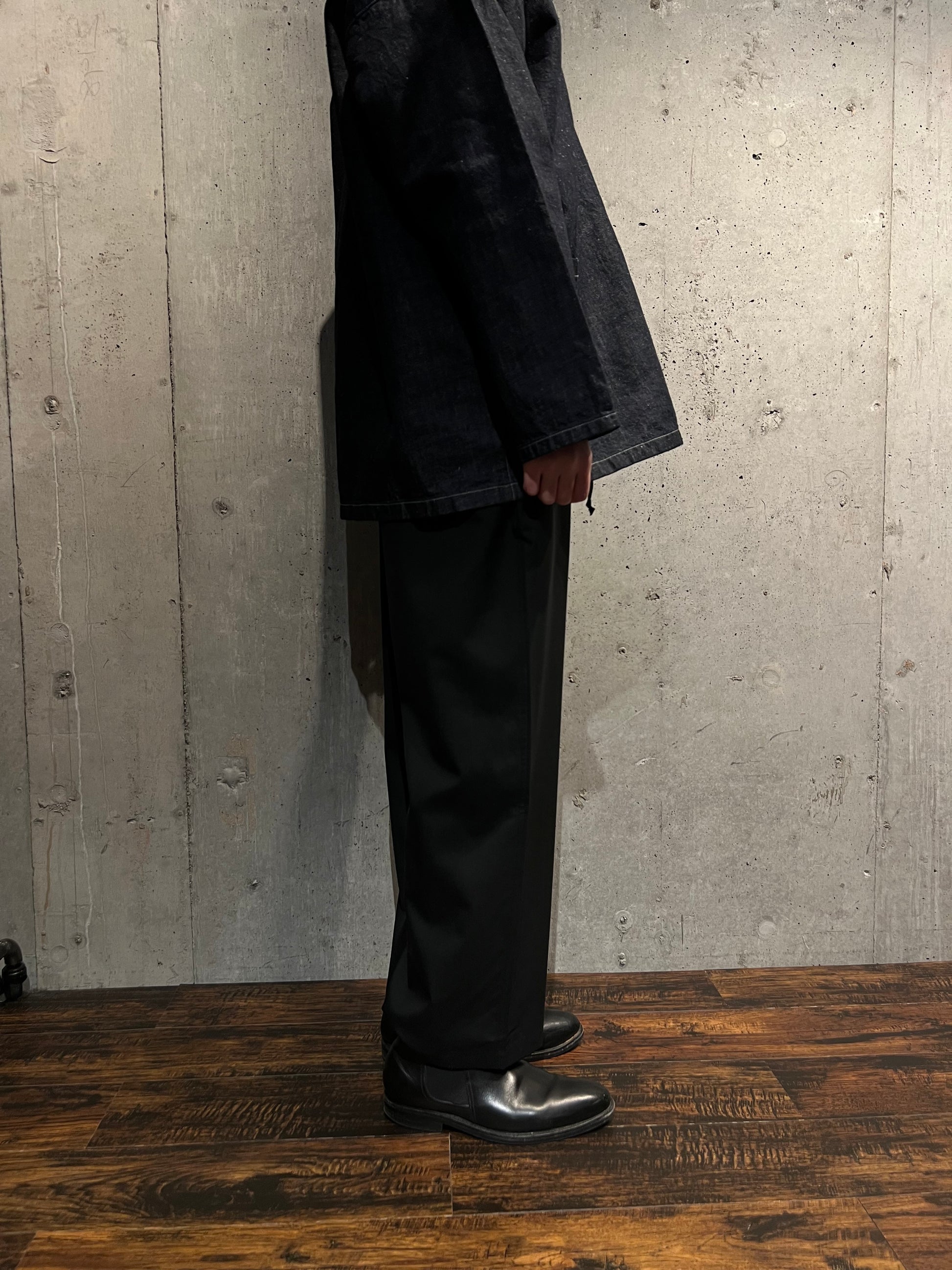 細番手の上質な糸を使用したウール100%の素材で、夏にも穿けるくらい肌触りが良く、シャリ感があります。ウールは吸放湿性に優れているため、汗をしっかり吸収し放出することで、常に快適な状態を保つことができます。また、温度変化にも柔軟に対応し、冷えすぎた室内でも体温の調整を助け、身体の負担を軽減します。こちらの素材は非常に軽量で、加工によりシワになりにくい性質も持っています。