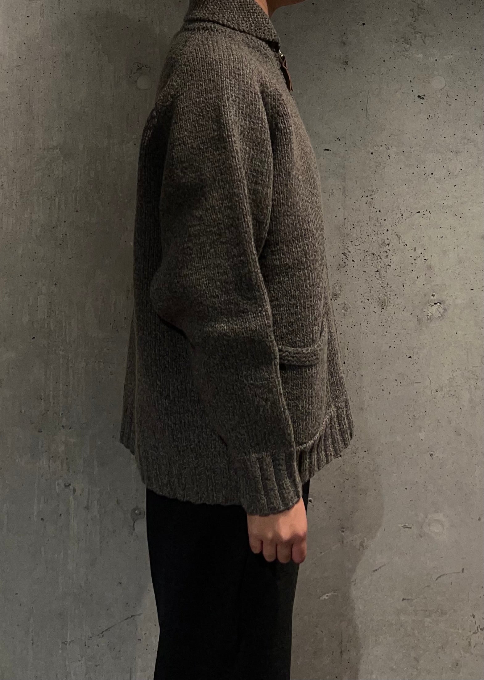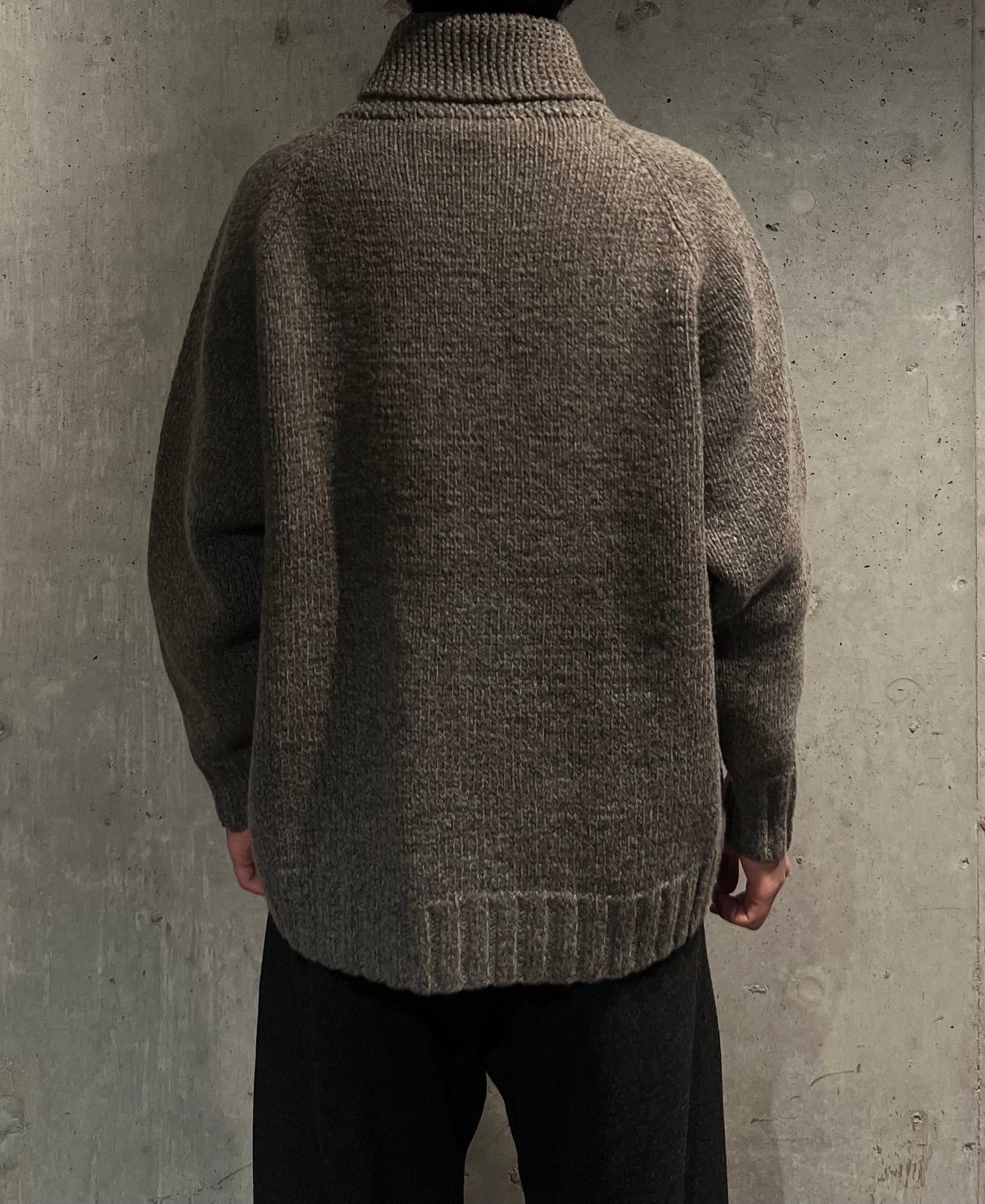 首元まで閉められるジップ仕様や自分たちで作っているレザータブ、自重で垂れず着用時に重さを感じない張りのあるフォルム、Slopeslowのカウチンセーターの特徴はそのままに、今シーズンからダブルジップ仕様にブラッシュアップしています。