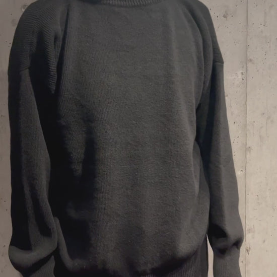 アウターインに着る防寒用として作られる軍物のセーターは、シルエットが細身で長いですが、これはゆったり着用できるサイズ感に仕上げられています