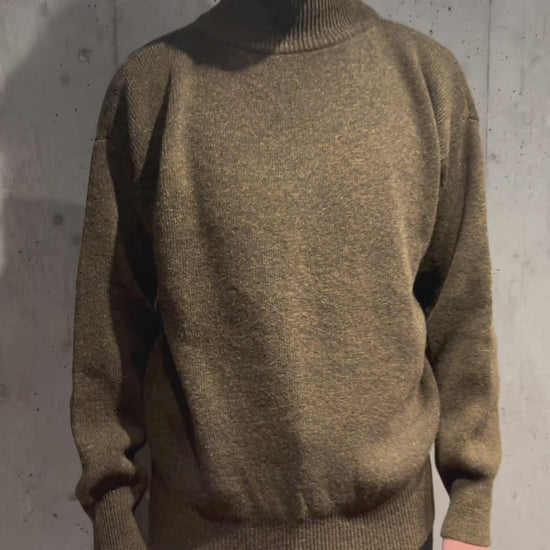 アウターインに着る防寒用として作られる軍物のセーターは、シルエットが細身で長いですが、これはゆったり着用できるサイズ感に仕上げられています