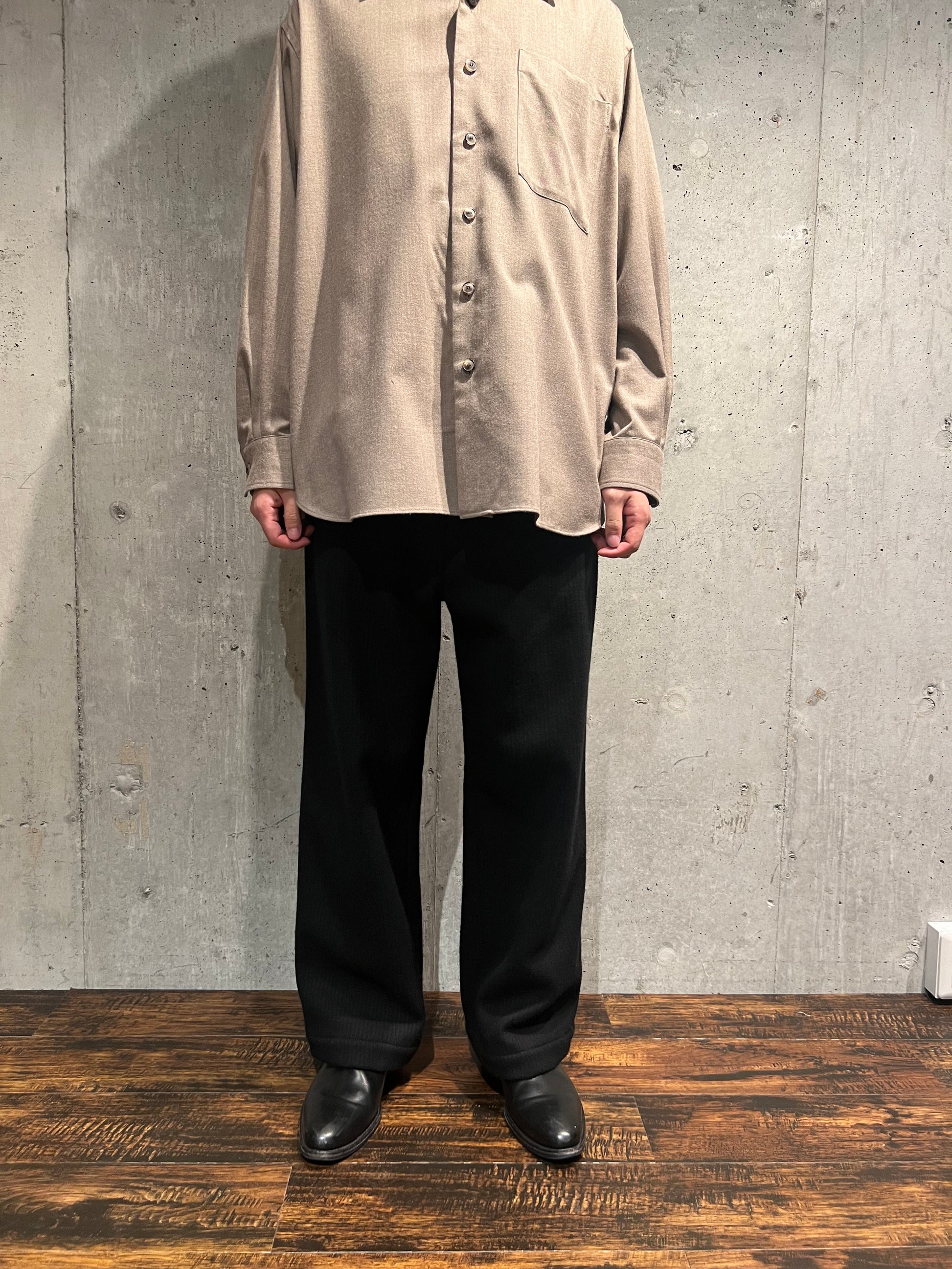 コットン・ウールを使用した、重厚感のあるワイドシルエットのパンツです。