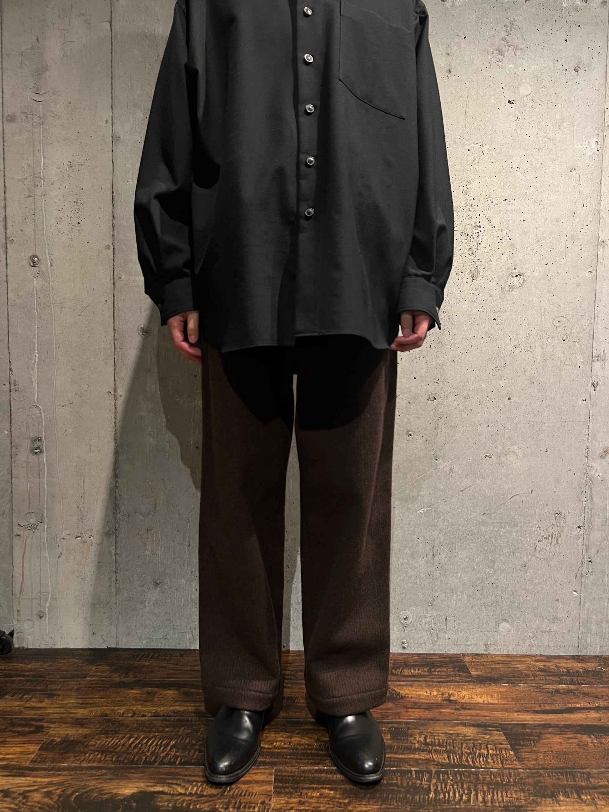 コットン・ウールを使用した、重厚感のあるワイドシルエットのパンツです。