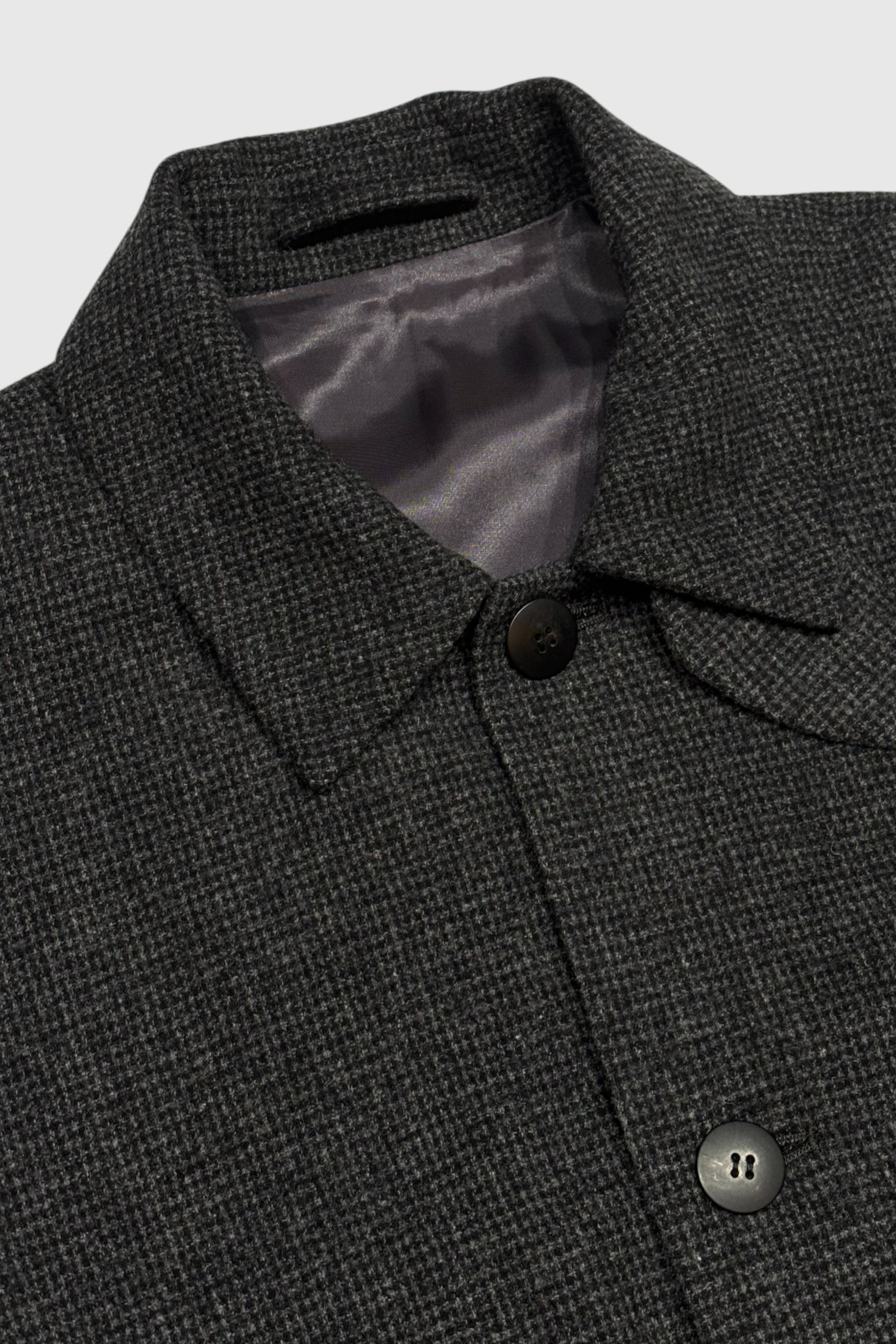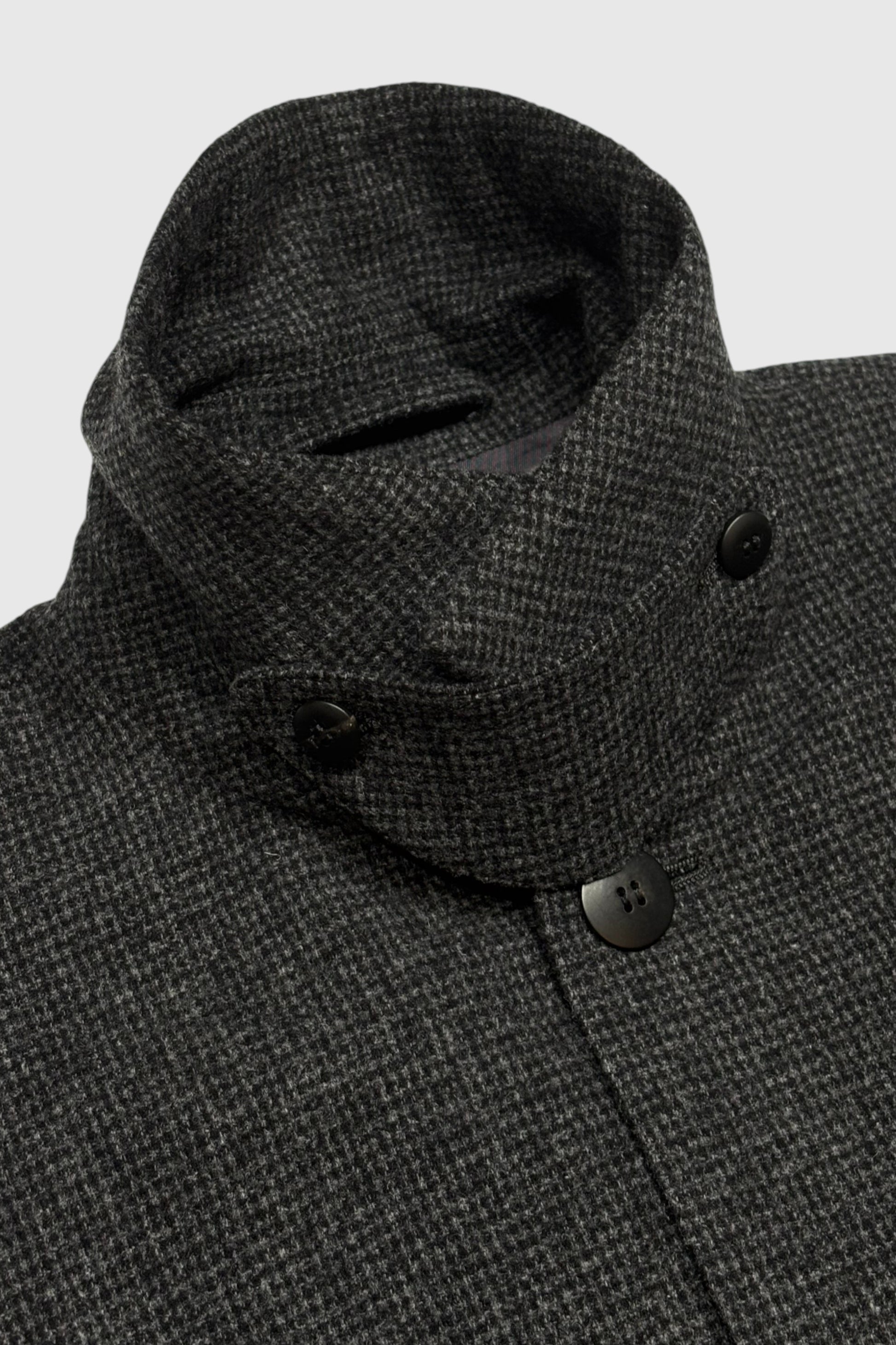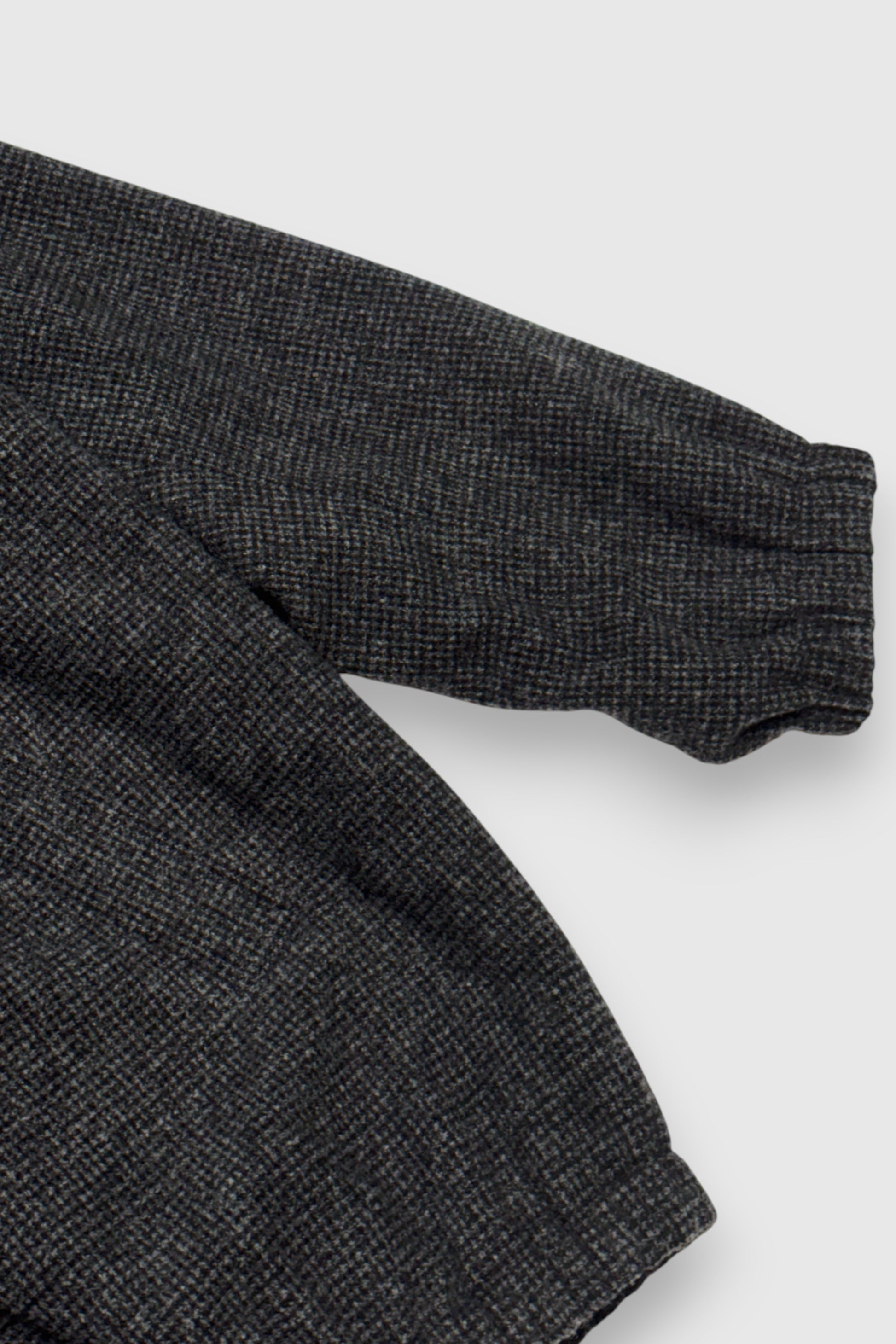 クラシックな雰囲気の千鳥格子は、ウールのトップ糸の上に綿の染糸を撚り合わせる事で表現しました。伝統を重んじつつも、あえて柄を崩し、独自の撚りを加えた素材です。