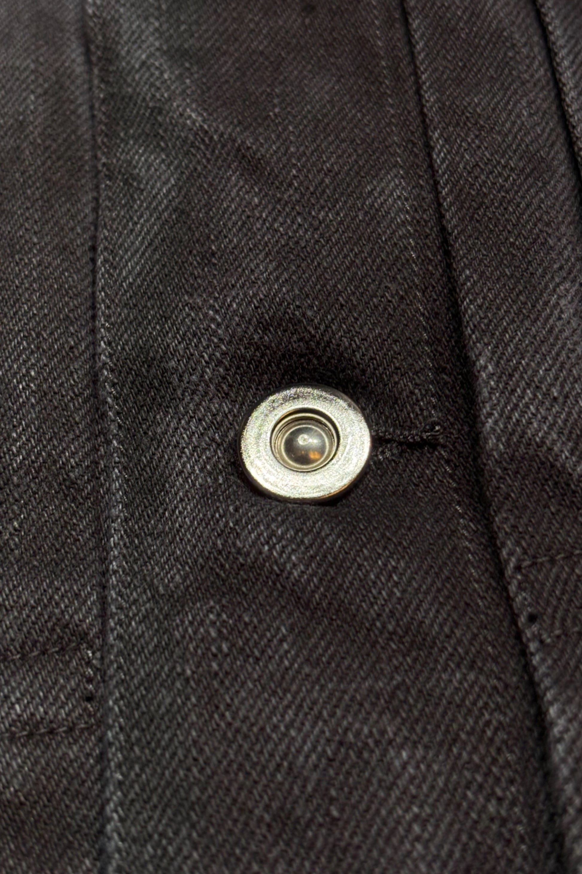 タックボタンは鉄製の無塗装。リベットは鉄製の銅メッキ。