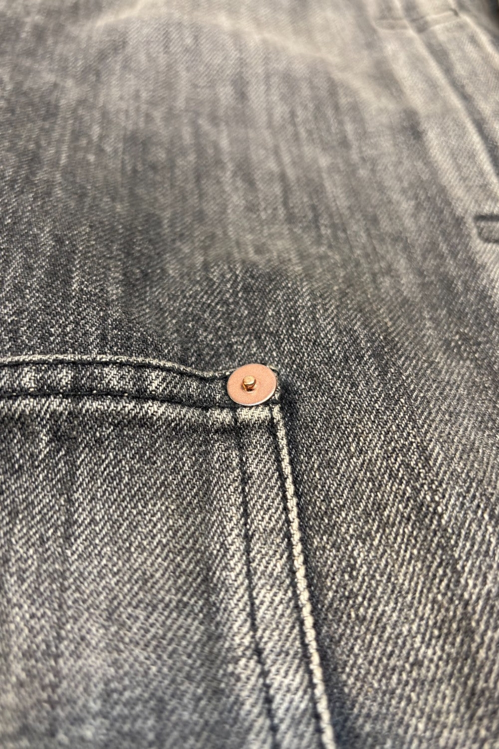 タックボタンは鉄製の無塗装で、リベットは鉄製の銅メッキになっており、両者共に徐々に錆びて行く為、独特な風合いとルックスに育ちます。
